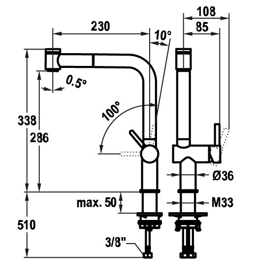 * QuickInstallation - Befestigung mit Gewindestutzen M33 x 1.5 mit Feststellschrauben
