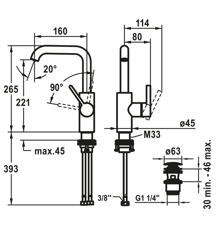 * Schwenkauslauf 120°, erweiterbar auf 360°
