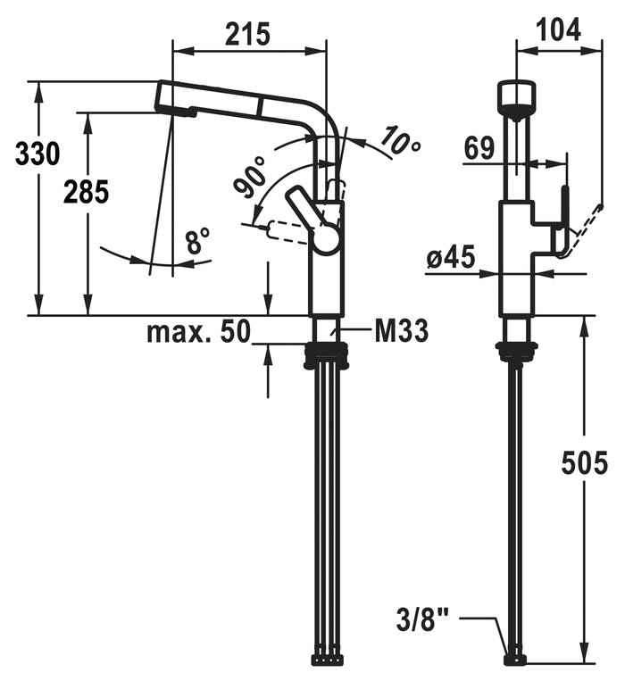 * ausziehbare Umstellbrause