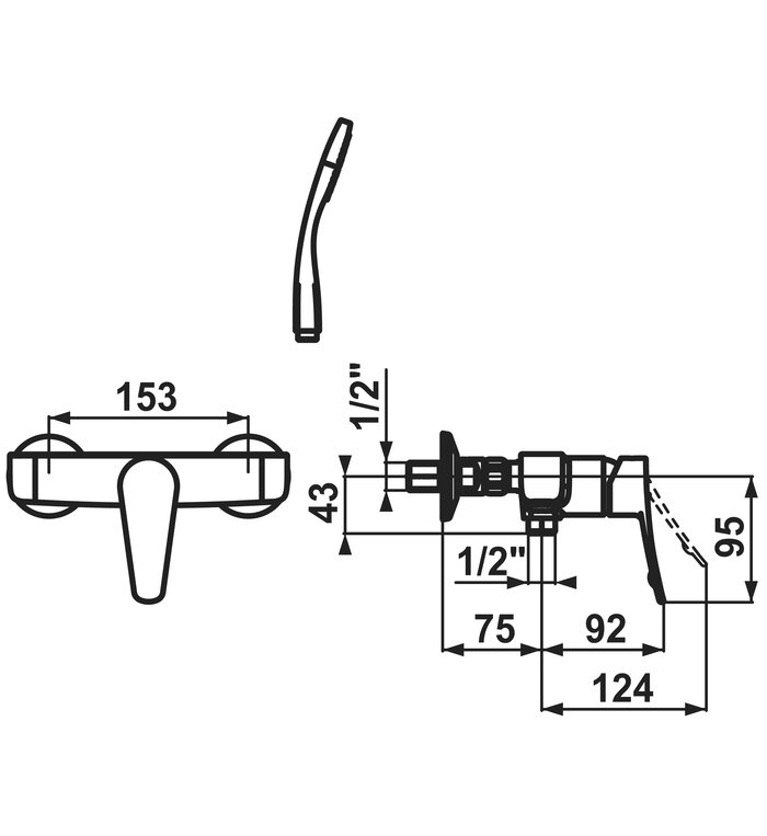 * Wandanschlüsse ½" x ½", absperrbar L 40
