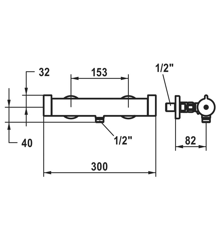 * Wandanschlüsse ½" x ½", absperrbar L 40