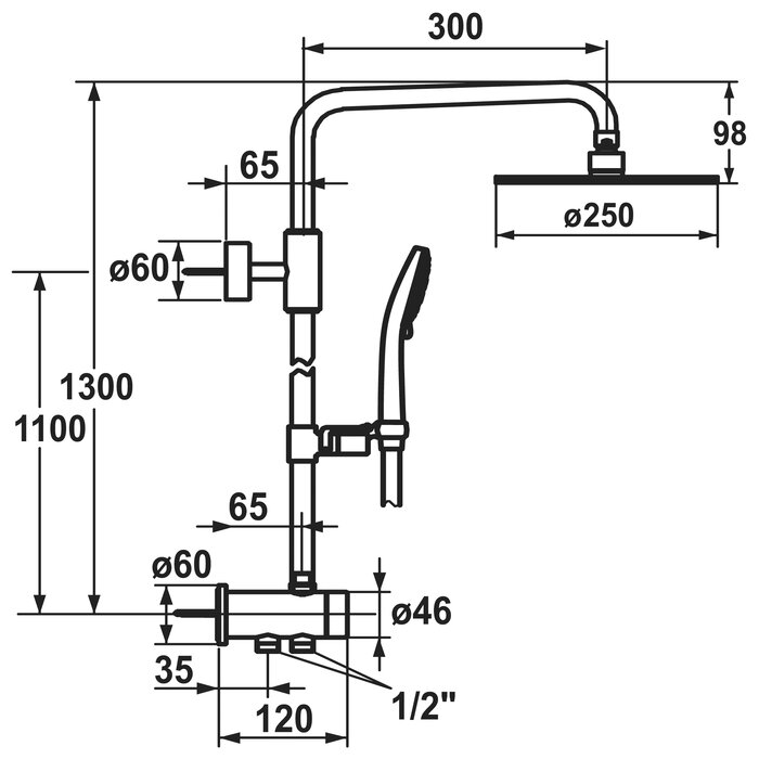 - Umsteller mit Abgang (oben) für wasserführende Duschgleitstange
