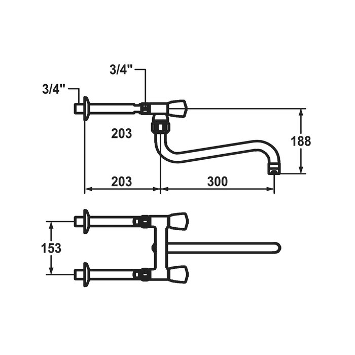 * Wandanschlüsse ¾" x ¾", nicht absperrbar L 160