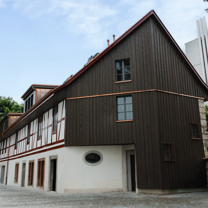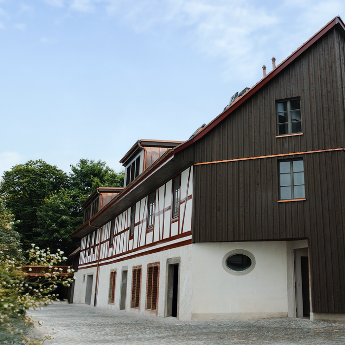 Nicht das nostalgische Festhalten am Alten stand im Vordergrund, sondern das Lesbarmachen der Zeitspuren: Proportionen, Riegelfassade, Holzverbindungen und handwerkliche Details, die dem Gebäude seit jeher Ausdruck verleihen.