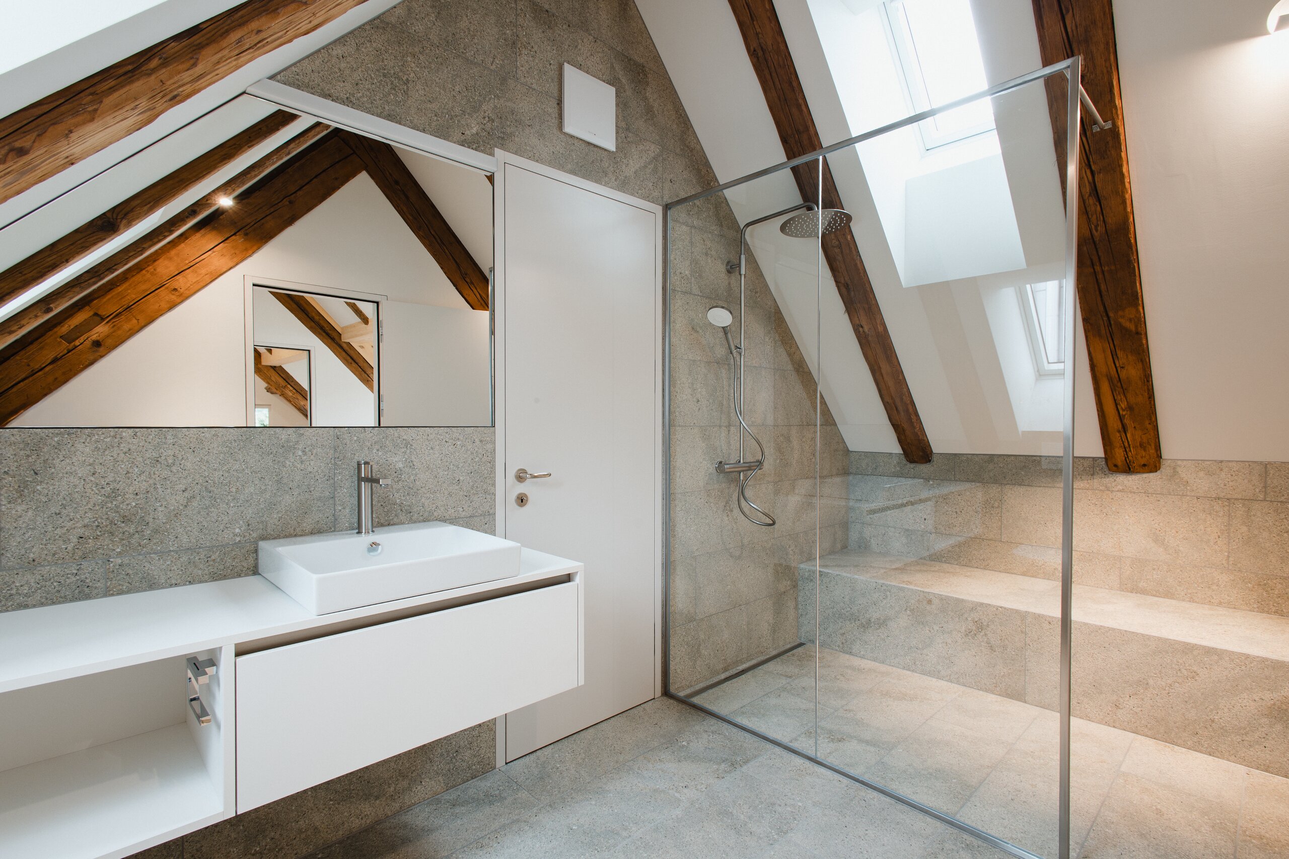 Eine besondere Herausforderung lag in der Integration moderner Technik in ein Gefüge, das ursprünglich ohne Brandschutz, Dämmung oder zeitgemässe Haustechnik auskam. Jeder Eingriff wurde so zurückhaltend wie möglich ausgeführt, um die historische Struktur weder zu überlagern noch zu verfremden.