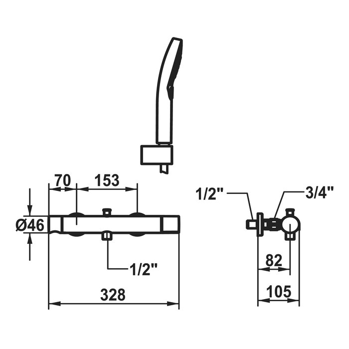 * Wandanschlüsse ½" x ¾", absperrbar L 40