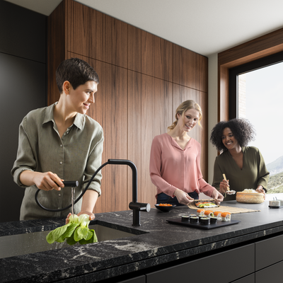 Dank OptimalSpace gewährt die KWC BEVO E angenehm viel Platz zum Waschen, Befüllen und Hantieren in der Küche.
