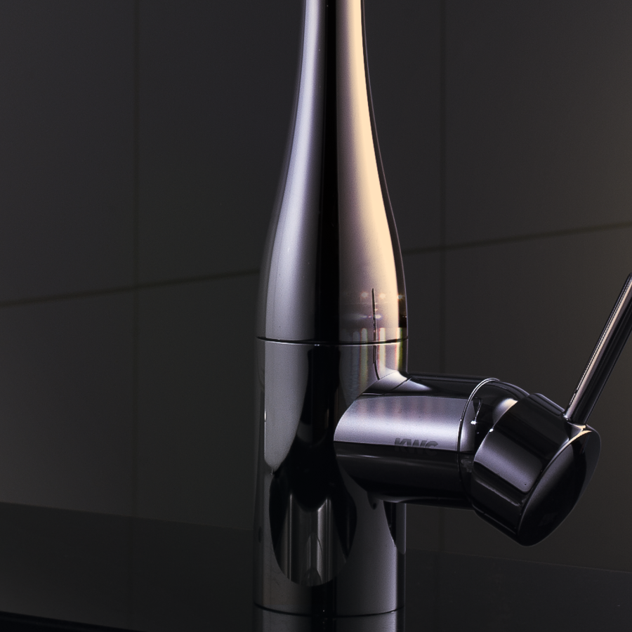 Die design- und funktionsorientierte Küchenarmatur präsentiert sich in perfekter Form und zeitloser Ästhetik, gemacht für den Einsatz in stilistisch klaren Küchenumgebungen, in denen Funktionales zugleich auch visueller Blickfang sein soll. Das spricht auch aus ihrem Gesamtauftritt und ihren Materialisierungen: KWC EVE gibt es in hochwertig verchromter Ausführung, mit rein weisser oder tief schwarzer Oberfläche sowie ganz in Edelstahl. Das Highlight, ein fugenlos integrierter Auszugsauslauf mit LED-Technologie.