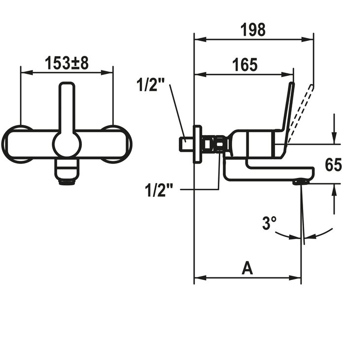 * Wandanschlüsse ½" x ½", nicht absperrbar L 40 exzentrisch 4 mm
