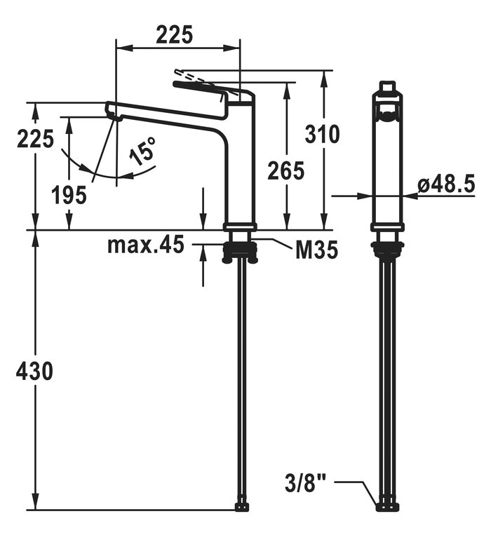 * Schwenkauslauf 150°