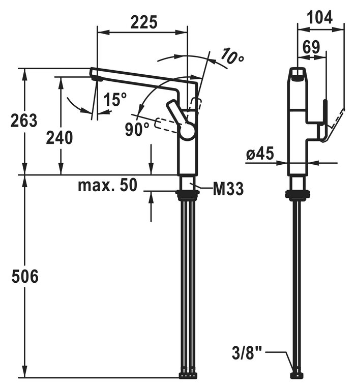 * SwivelStop - Schwenkauslauf 360°, begrenzbar auf 150°