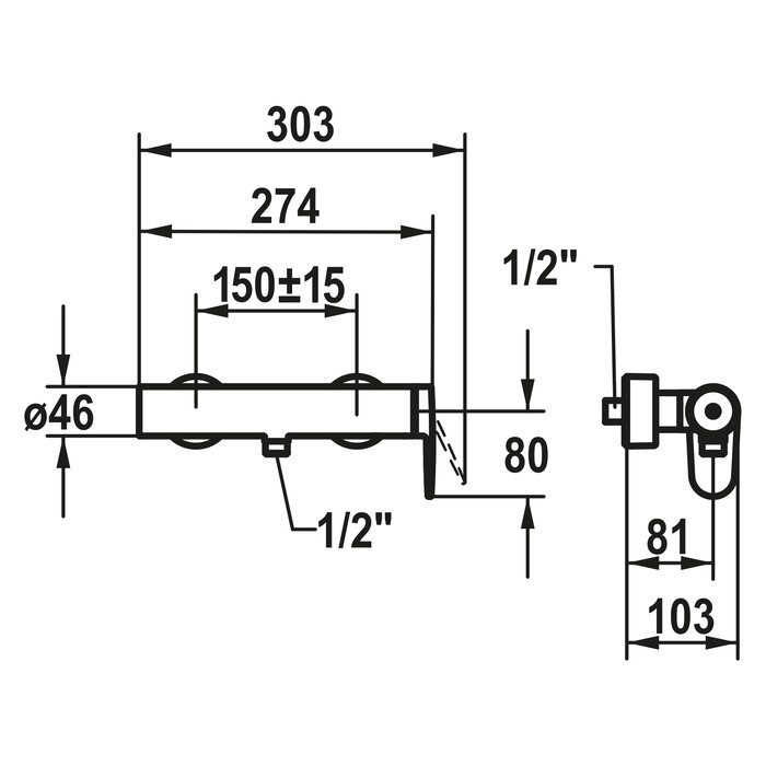 * Verdeckte Wandanschüsse ½" x ¾", nicht absperrbar L 46 exzentrisch 7.5 mm
