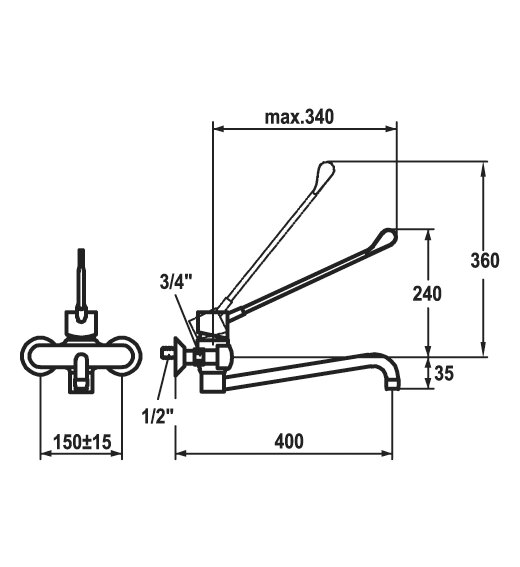 * Wandanschlüsse ½" x ¾", absperrbar L 40 exzentrisch 7.5 mm