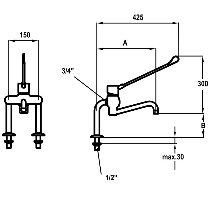 * Standanschlüsse ½" x ¾" L 55