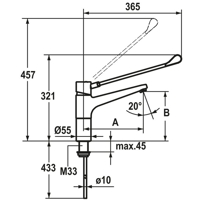 * Befestigung mit Gewindestutzen M33 x 1.5