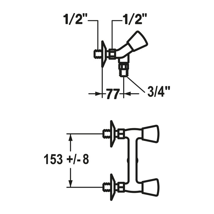* Wandanschlüsse ½" x ½", absperrbar L 40 exzentrisch 4 mm