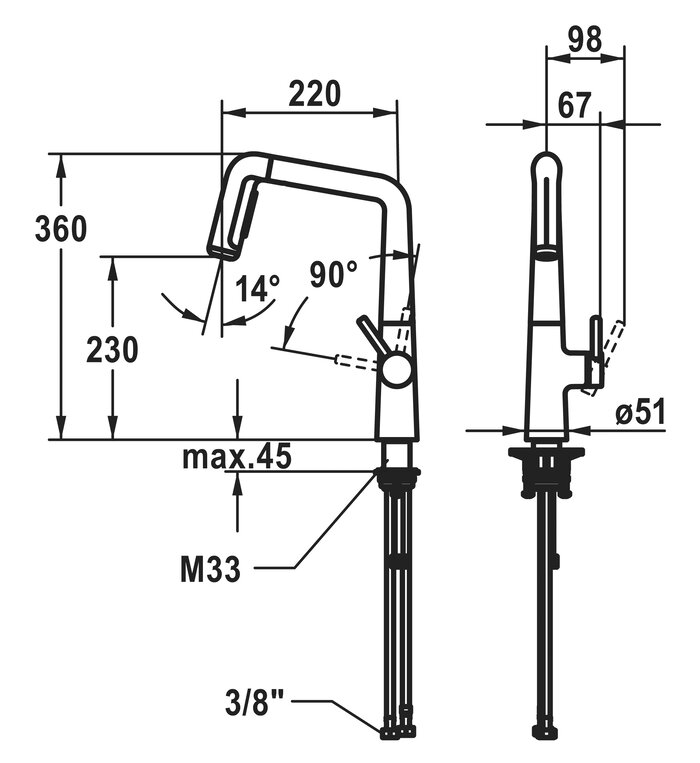 - Schlauchoberfläche passend zur Armaturoberfläche