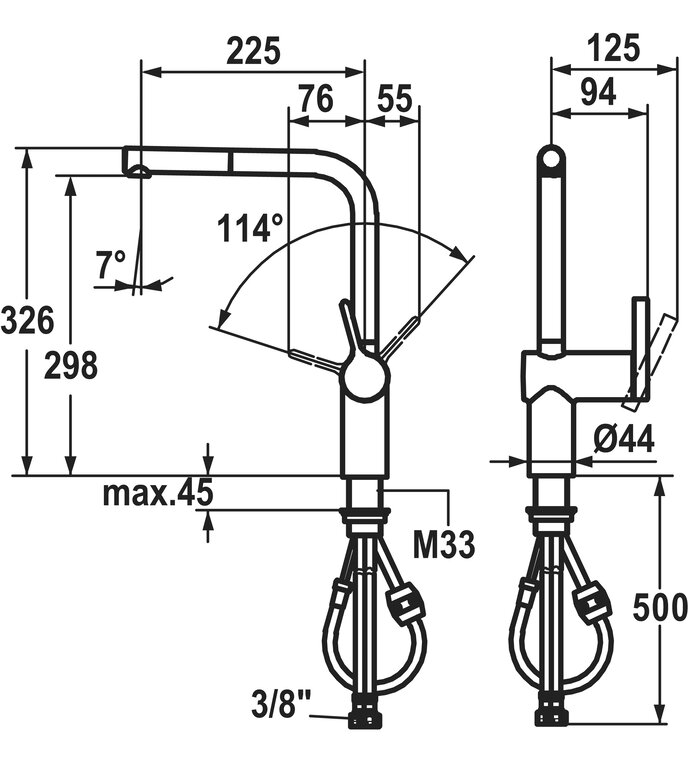 - Schlauchoberfläche passend zur Armaturoberfläche