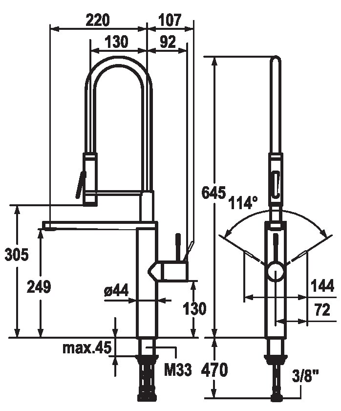 * Befestigung mit Gewindestutzen M33 x 1.5