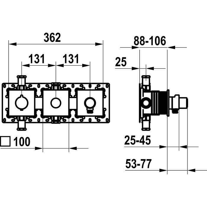 - Unit for concealed installation KWC HOMEBOX Thermostatic/ lever mixer 2 consumers 39.006.261.931