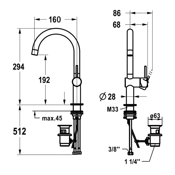 * Swivel spout 120°