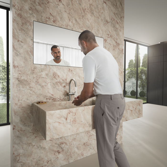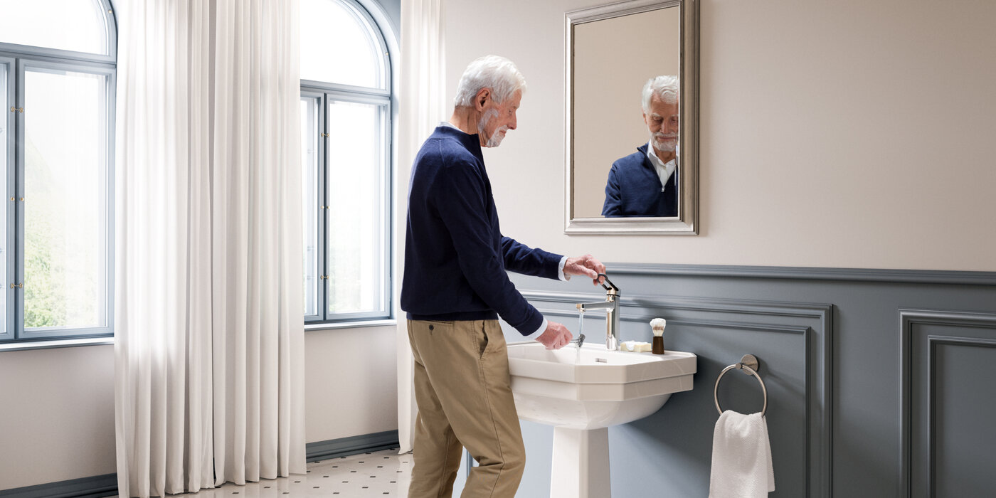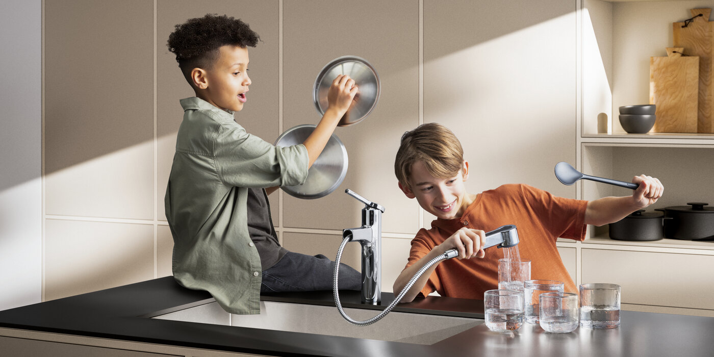 That's because special safety requirements are an obvious standard for us here: Ease of use, durability, protection against injury, including for children and people with limitations in their living situation. Already at the first consideration we take the need for safety into account: Even for the simple matter of touching a tap. Touch protection, which is especially valued by parents of young children, is a basic component: An insulated hot water supply in a clamshell design means the tap and pull-out spray get warm, but never hot. Just one example of our intelligent functions that contribute directly towards product safety. We think for people. And we think ahead.