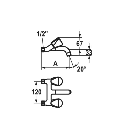 KWCSTAR Mural goul.fixe A125 Chromeline sans racc. AD120