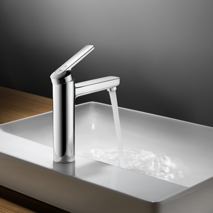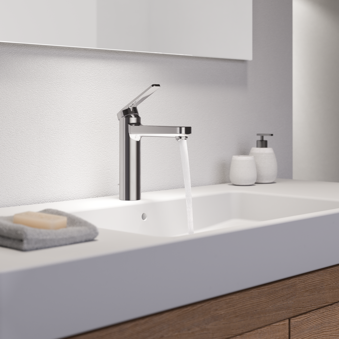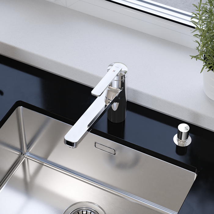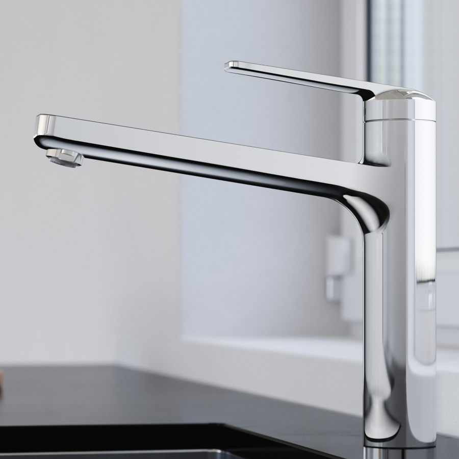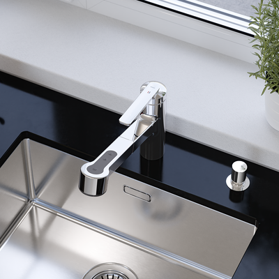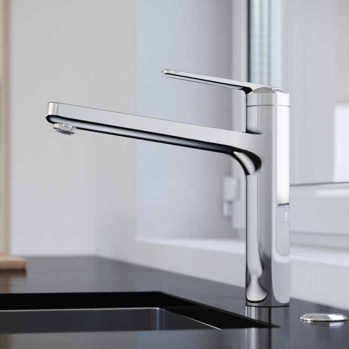 Technique et perfection ayant fait leurs preuves. Lanouvelle variante basse est parfaite pour un montage dans des endroits exigus. Elle convainc par sa finesse esthétique et tactile, son utilisation intuitive, son ergonomie bien pensée et une douchette extractible à trois types de jets. Ces propriétés font la popularité de la gamme DOMO.