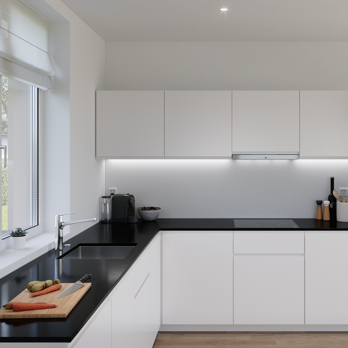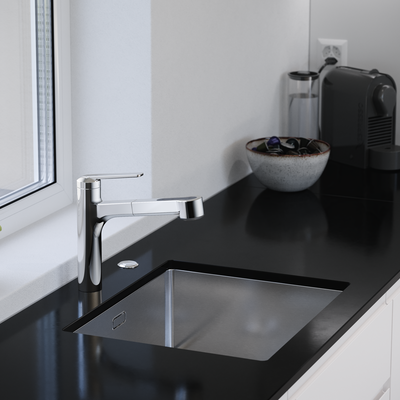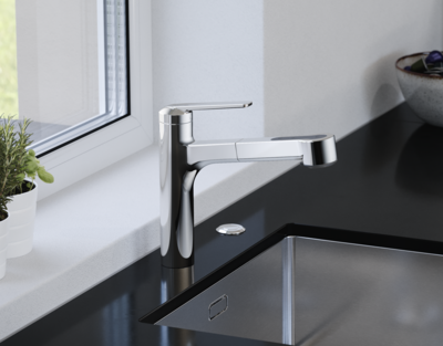 OptimalSpace accroît le rayon d’action. La douchette est extensible jusqu’à 600 millimètres. L’angle à 90 degrés augmente la place dans l’évier.