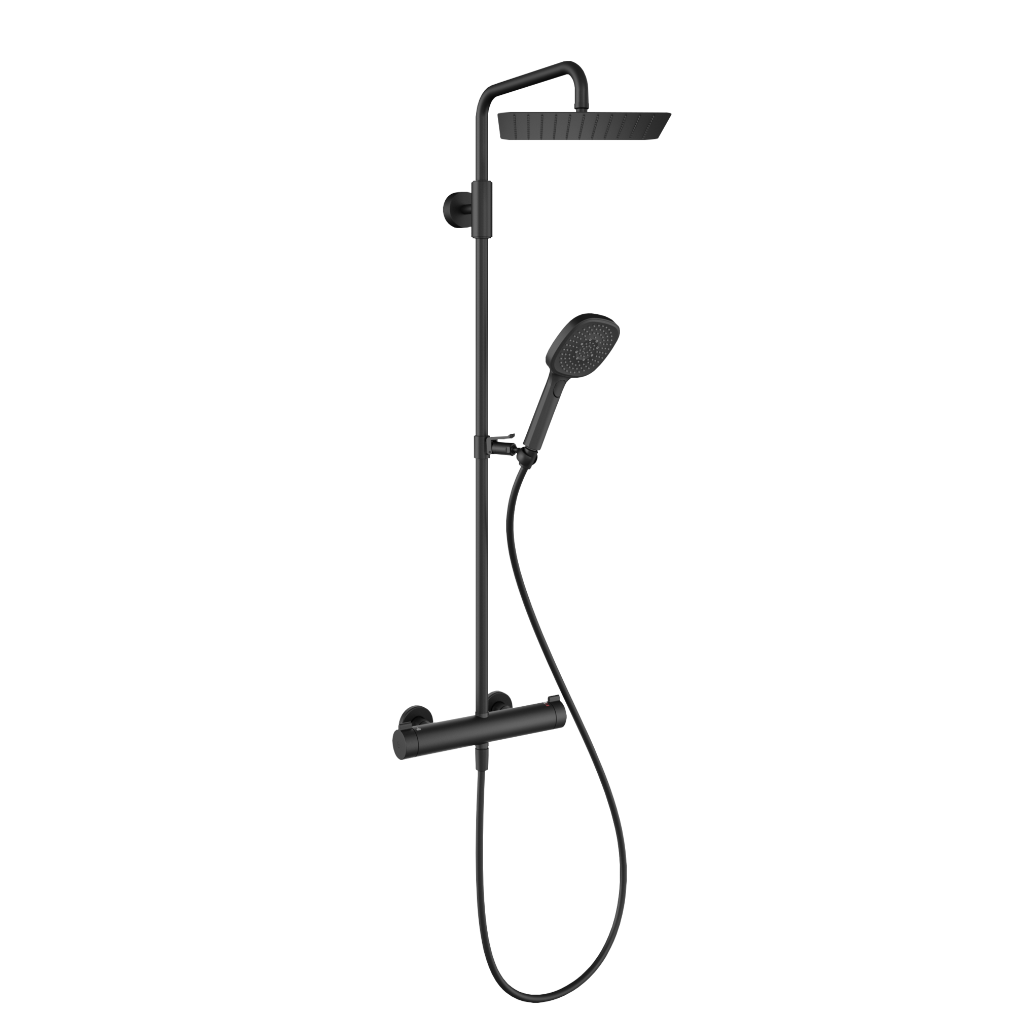 - Miscelatore termostatico compresi collegamenti a muro con uscita (in alto) per asta di scorrimento per doccia con passaggio d'acqua