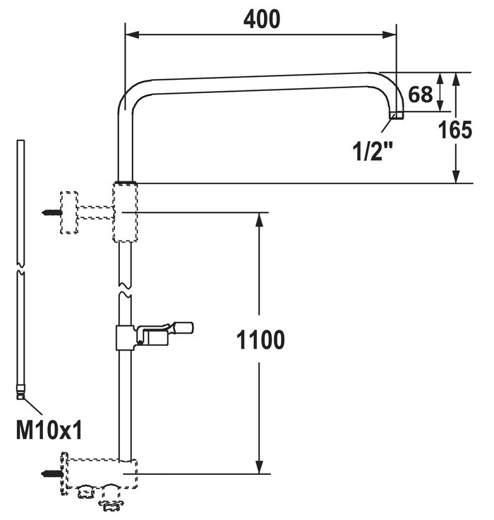 * Doucheglijstang waardoor water loopt, kan zo nodig tot individuele lengte ingekort worden