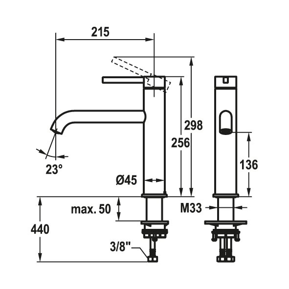 * Draaibare uitloop 150°