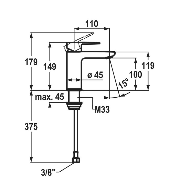 * Bevestiging met schroefdraadhuls M33 x 1.5
