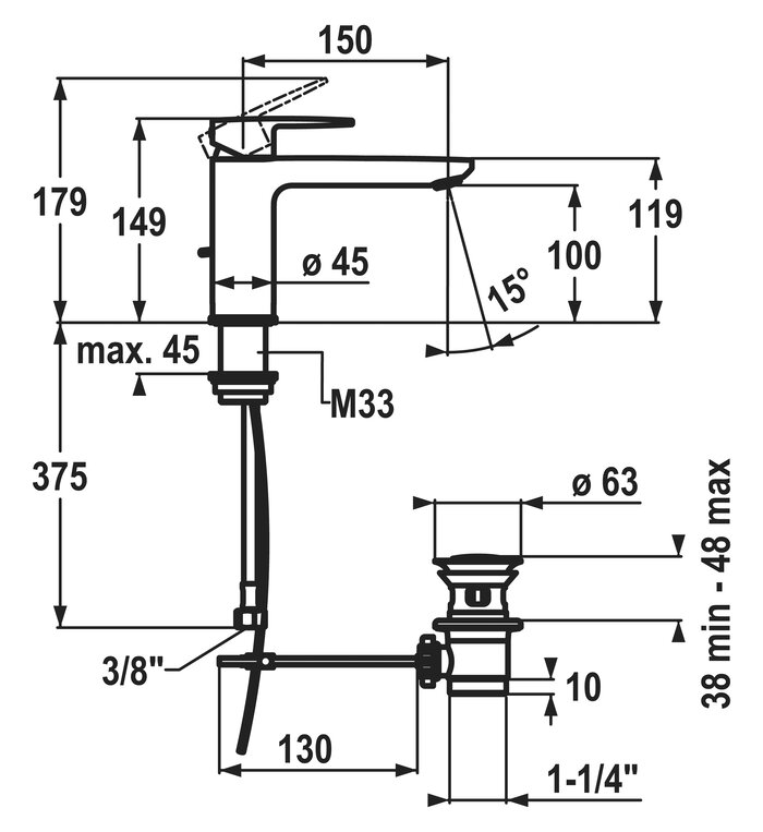 * Bevestiging met schroefdraadhuls M33 x 1.5