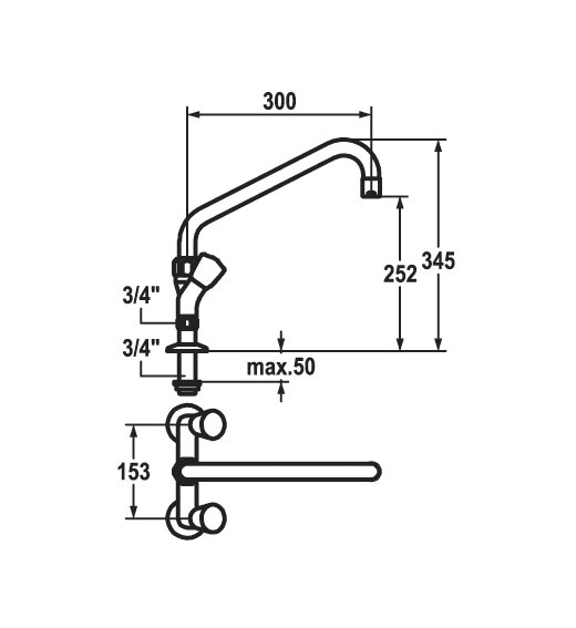 * Rechte zuilkoppelingen ¾" x ¾" L 45