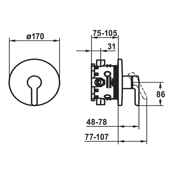 125171 - 21.474.500.000 - WAMAS 2.0 - WAMAS 2.0 Afbouwdeel - eengreepsmengkraan - douche