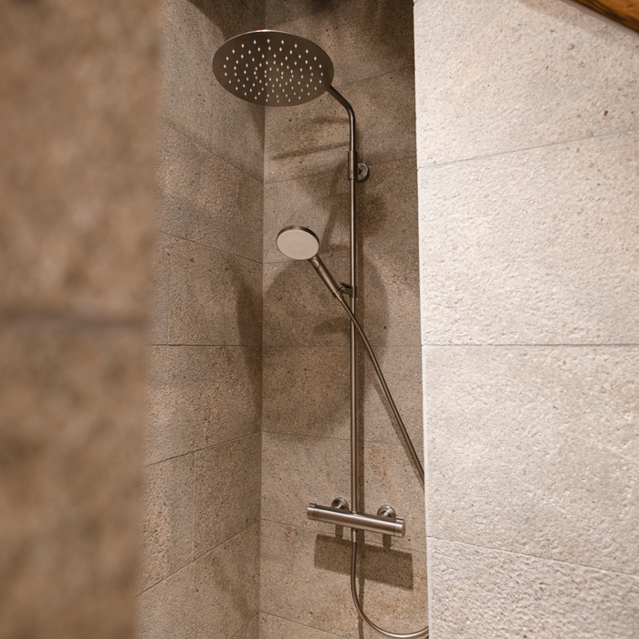 Für die Ausstattung der Bäder fiel die Wahl auf die KWC AVA E – eine Serie, die dieselben Werte verkörpert wie das gesamte Projekt: Präzision, Reduktion und Beständigkeit. Ihre reduzierte Formensprache und hochwertige Verarbeitung verbinden sich harmonisch mit der zurückhaltenden Architektur. Die Armatur fügt sich ein, ohne sich aufzudrängen und ist präsent durch Qualität, nicht durch Lautstärke.