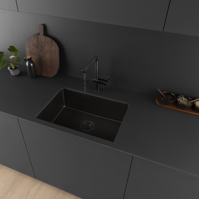 Die formschöne KWC BEVO E interpretiert klassische KWC-Designelemente. Wo sie im Einsatz ist, wird sie zum Blickfang: egal ob in Edelstahl, industrial black, brushed copper, gold oder graphite.