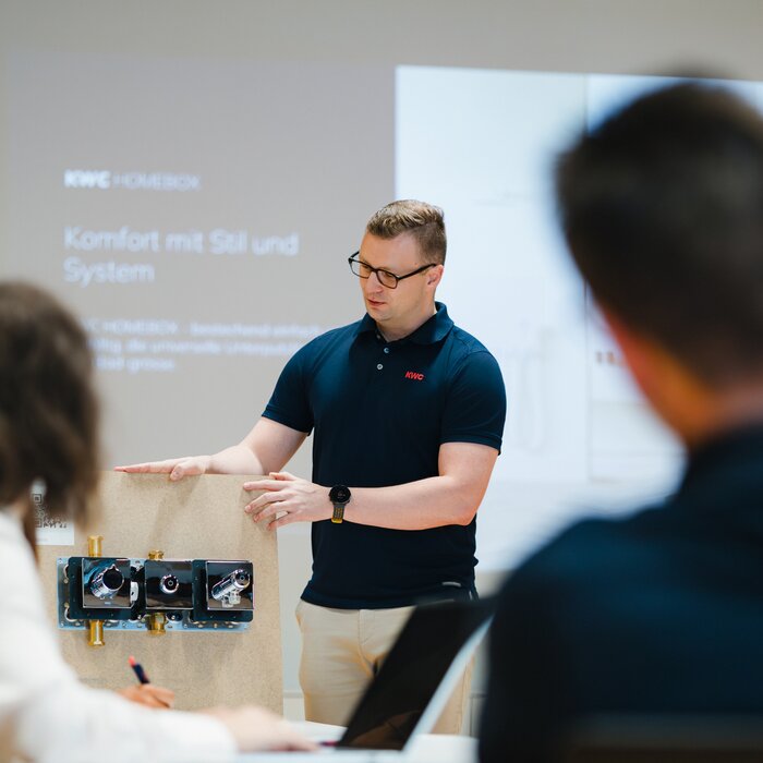In unserer neuen Schulung Unterputzsysteme führen wir Sie durch unser vielfältiges Portfolio an Unterputzsystemen. In der Schulung erhalten Sie mehr Informationen zum Aufbau der einzelnen Einheiten, die komplette Installation sowie Tipps und Tricks zur Wartung und Pflege. Der Fokus liegt auf der neuen KWC HOMEBOX, welche seit diesem Jahr neu im Sortiment ist und sowohl als Variante mit Hebelmischer als auch Thermostatmischer erhältlich ist.